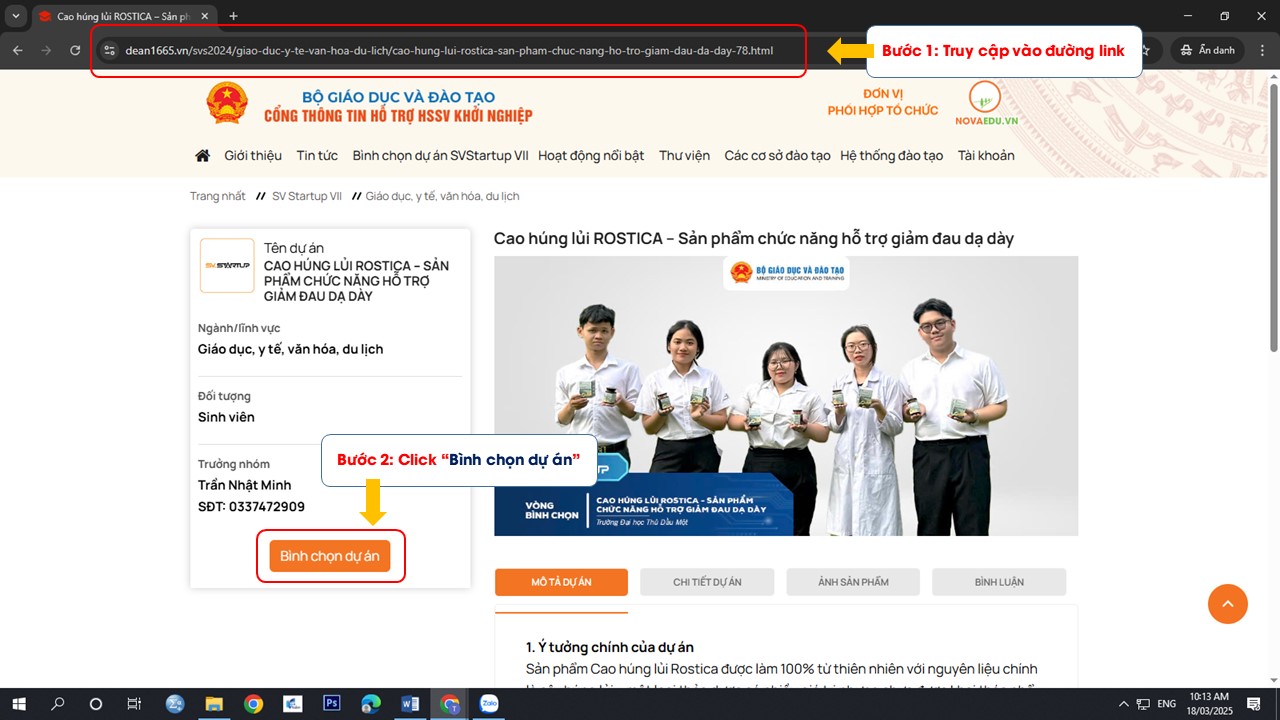 Bước 1: Truy cập vào đường link: https://dean1665.vn/svs2024/giao-duc-y-te-van-hoa-du-lich/cao-hung-lui-rostica-san-pham-chuc-nang-ho-tro-giam-dau-da-day-78.html.
