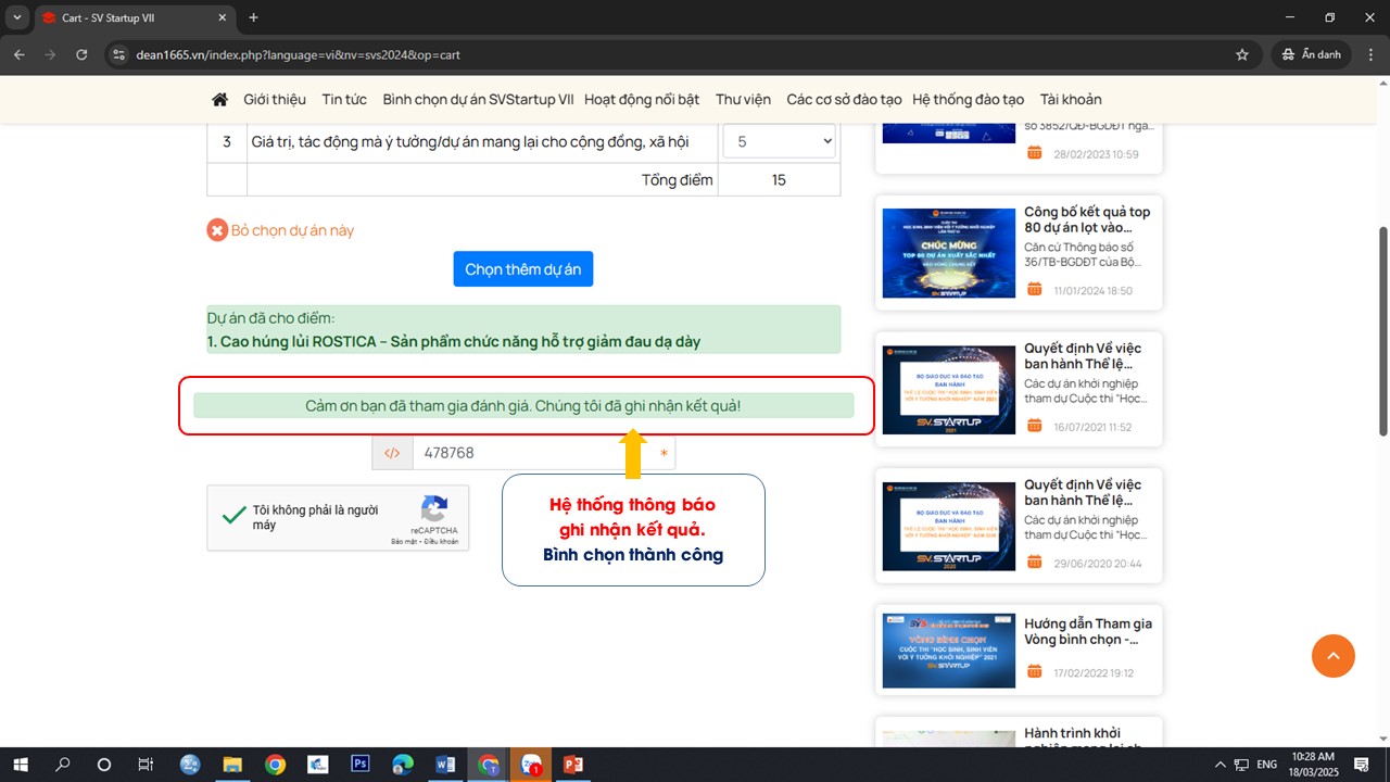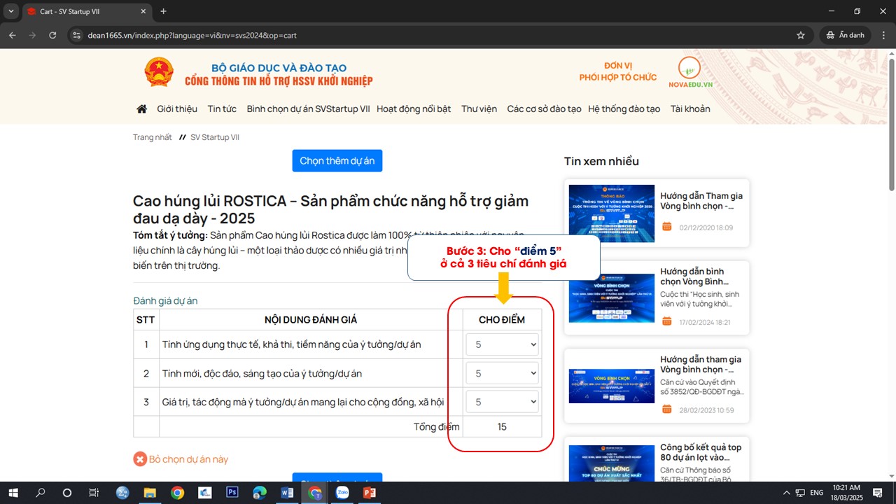 Cổng bình chọn cho các dự án được mở trong vòng 15 ngày: Từ 12h00 phút ngày 17/3/2025 đến 12h00 phút ngày 31/3/2025.