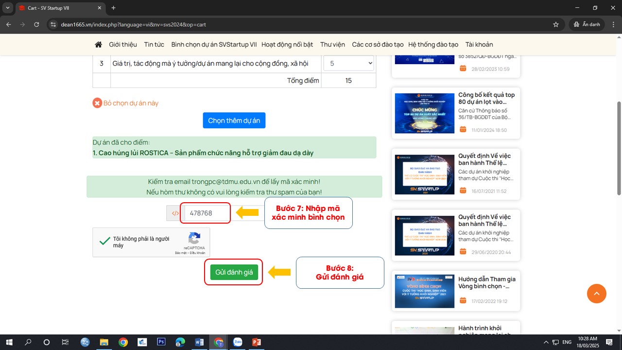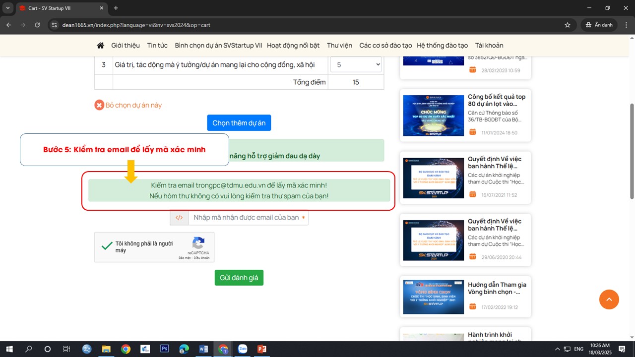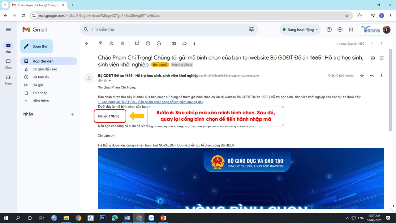 Bước 6: Sao chép mã xác minh bình chọn. Sau đó, quay lại cổng bình chọn để nhập mã