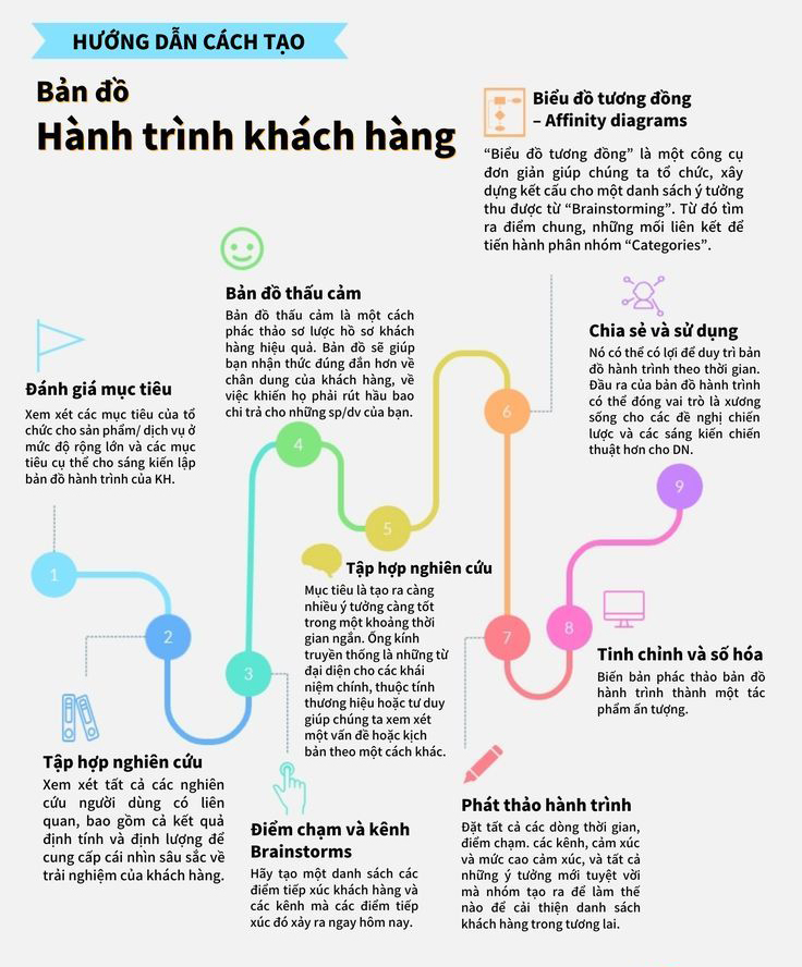 Infographic này cung cấp hướng dẫn trực quan và dễ hiểu về cách xây dựng Bản đồ Hành trình Khách hàng, giúp doanh nghiệp nhìn nhận toàn diện trải nghiệm của khách hàng qua từng điểm chạm. Thông qua các bước từ nghiên cứu, thấu cảm, brainstorm đến phác thảo và tối ưu, infographic hỗ trợ tổ chức thông tin một cách logic, xác định cảm xúc – nhu cầu của khách hàng và từ đó cải thiện sản phẩm, dịch vụ một cách hiệu quả và lấy khách hàng làm trung tâm.