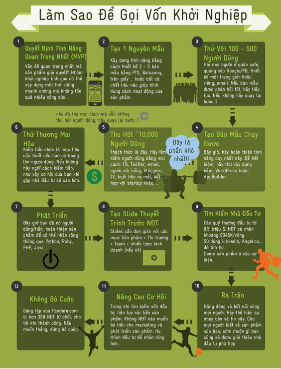 Infographic “Làm sao để gọi vốn khởi nghiệp” phác họa lộ trình từng bước giúp startup chuẩn bị và tiếp cận nhà đầu tư hiệu quả. Từ việc xác định tính năng cốt lõi, tạo nguyên mẫu, thử nghiệm với người dùng, đến hoàn thiện sản phẩm, thuyết trình và ra trận gọi vốn, infographic cung cấp cái nhìn thực tế, dễ hiểu cho những người mới khởi nghiệp, nhấn mạnh tinh thần kiên trì, học hỏi và tối ưu liên tục để nâng cao cơ hội thành công.