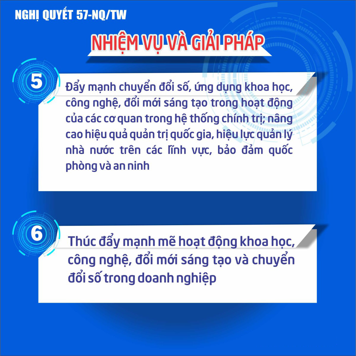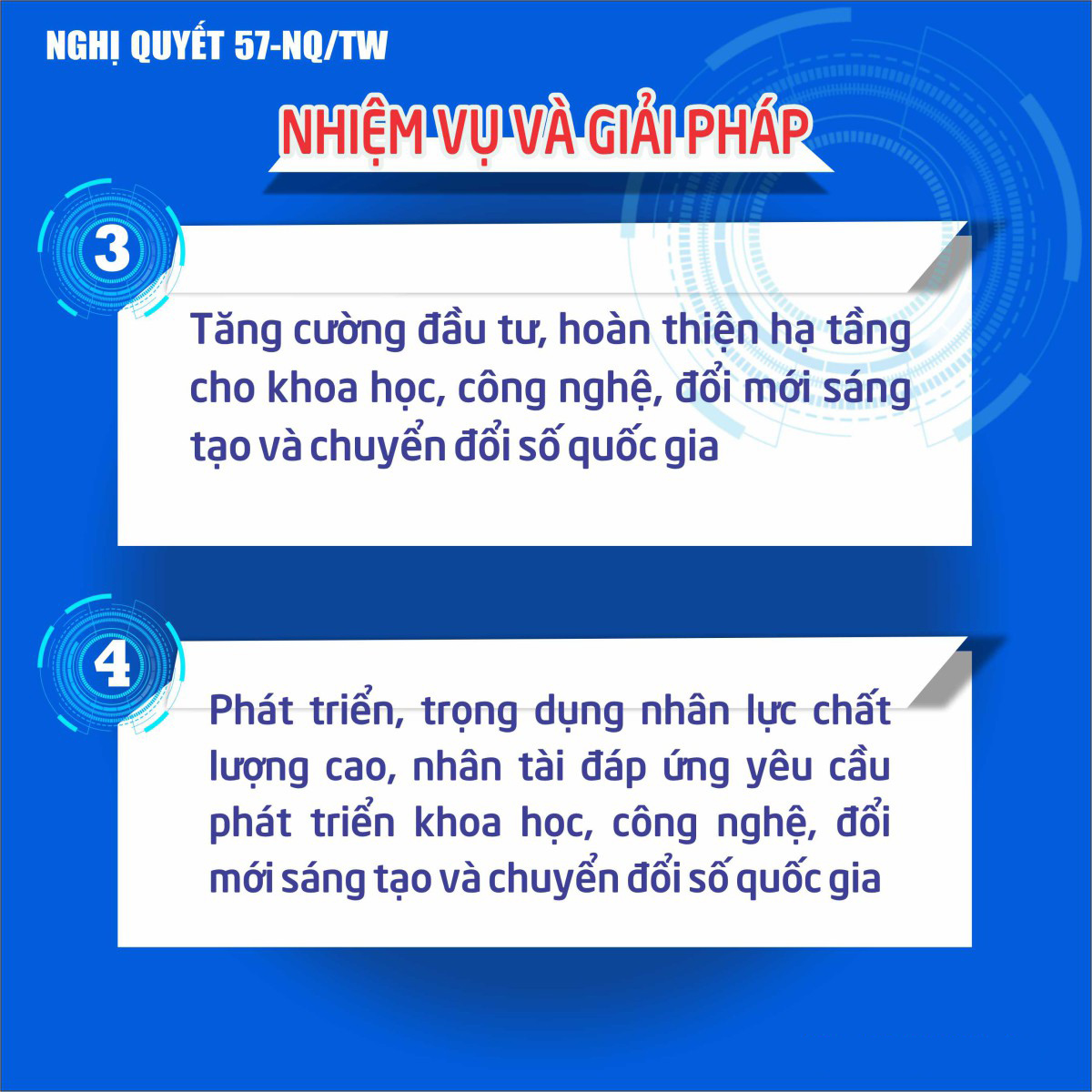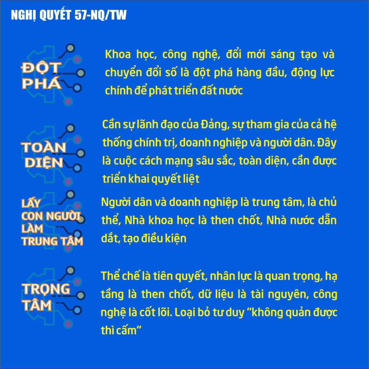 INFOGRAPHIC: NGHỊ QUYẾT SỐ 57-NQ/TW CỦA BỘ CHÍNH TRỊ VỀ ĐỘT PHÁ PHÁT TRIỂN KHOA HỌC, CÔNG NGHỆ, ĐỔI MỚI SÁNG TẠO VÀ CHUYỂN ĐỔI SỐ QUỐC GIA