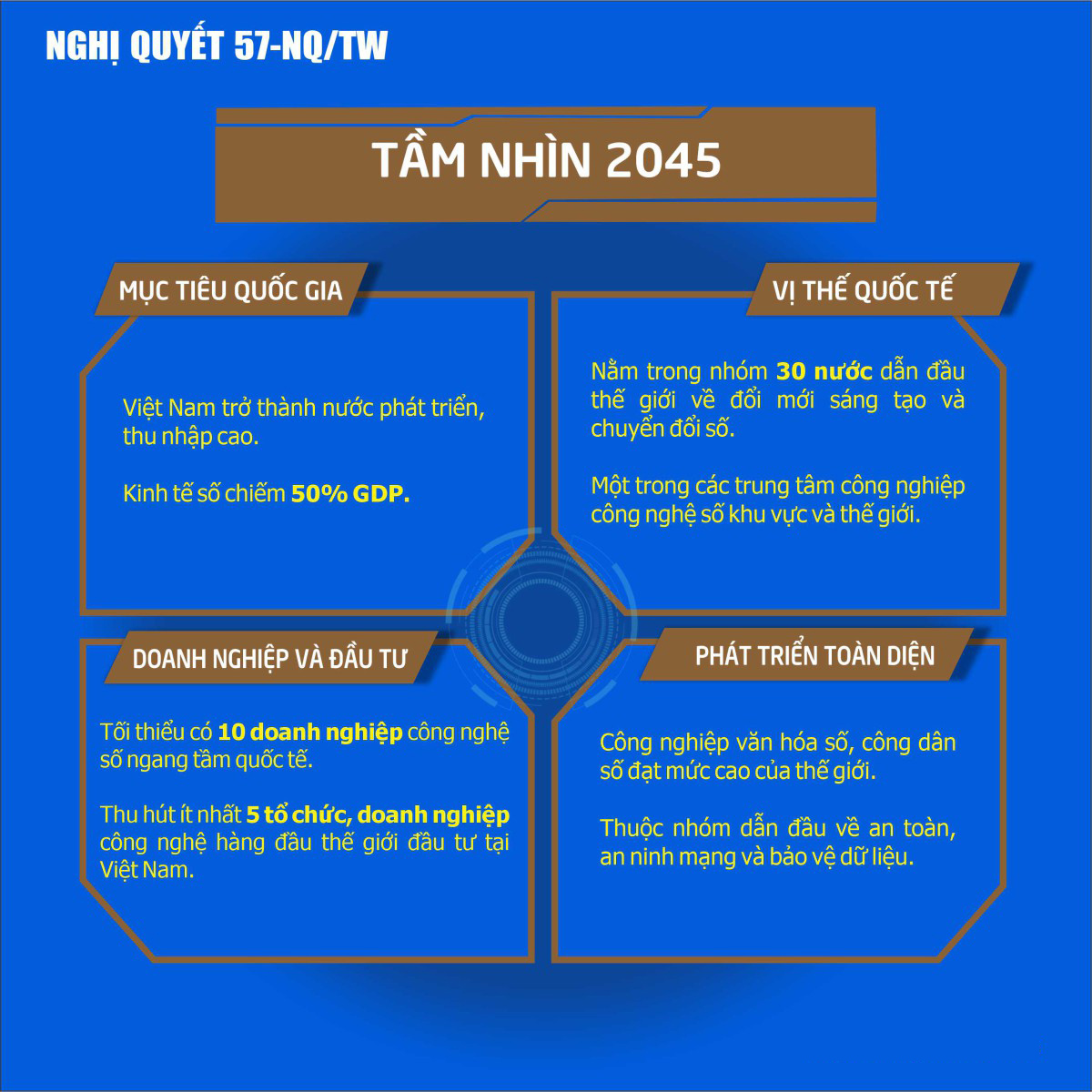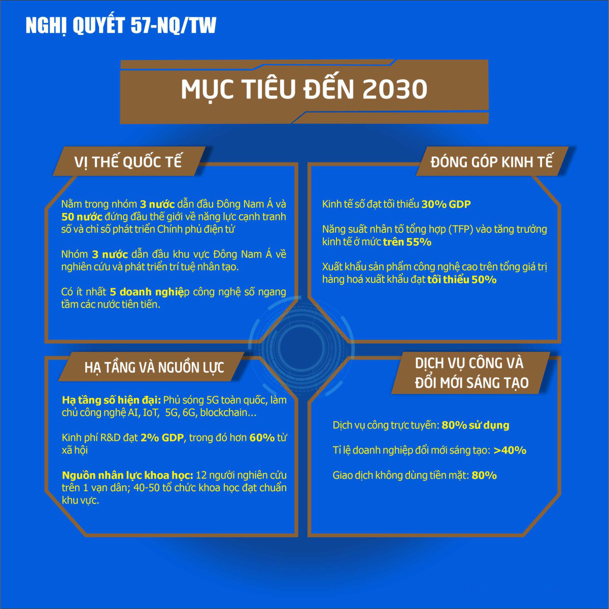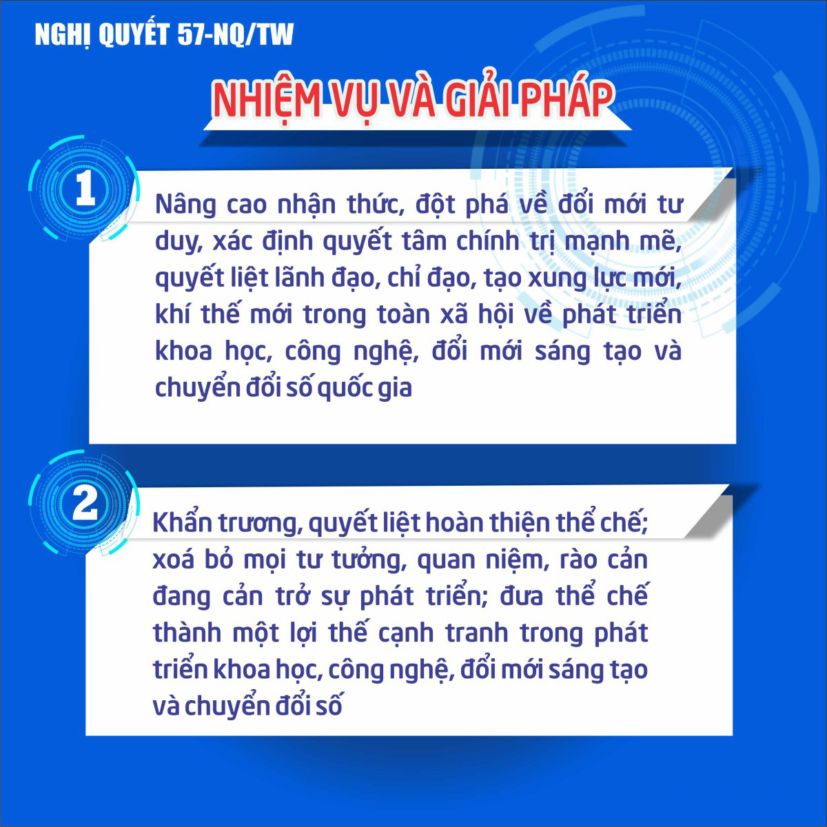 INFOGRAPHIC: NGHỊ QUYẾT SỐ 57-NQ/TW CỦA BỘ CHÍNH TRỊ VỀ ĐỘT PHÁ PHÁT TRIỂN KHOA HỌC, CÔNG NGHỆ, ĐỔI MỚI SÁNG TẠO VÀ CHUYỂN ĐỔI SỐ QUỐC GIA