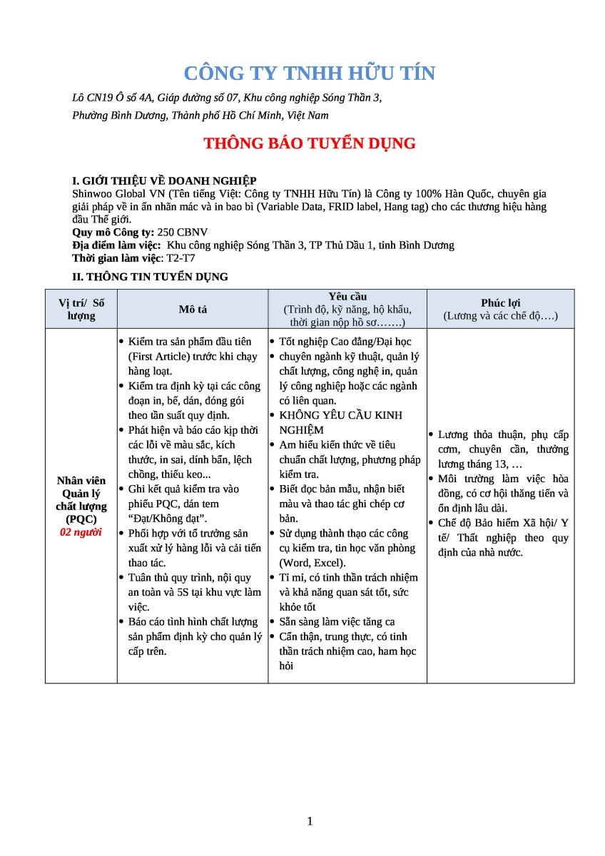 Công ty TNHH Hữu Tín (Shinwoo Vina) |