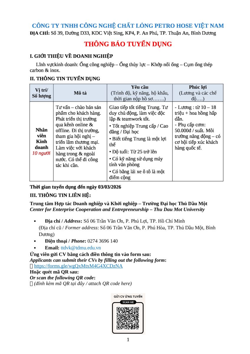 CÔNG TY TNHH CÔNG NGHỆ CHẤT LỎNG PETRO HOSE VIỆT NAM. |