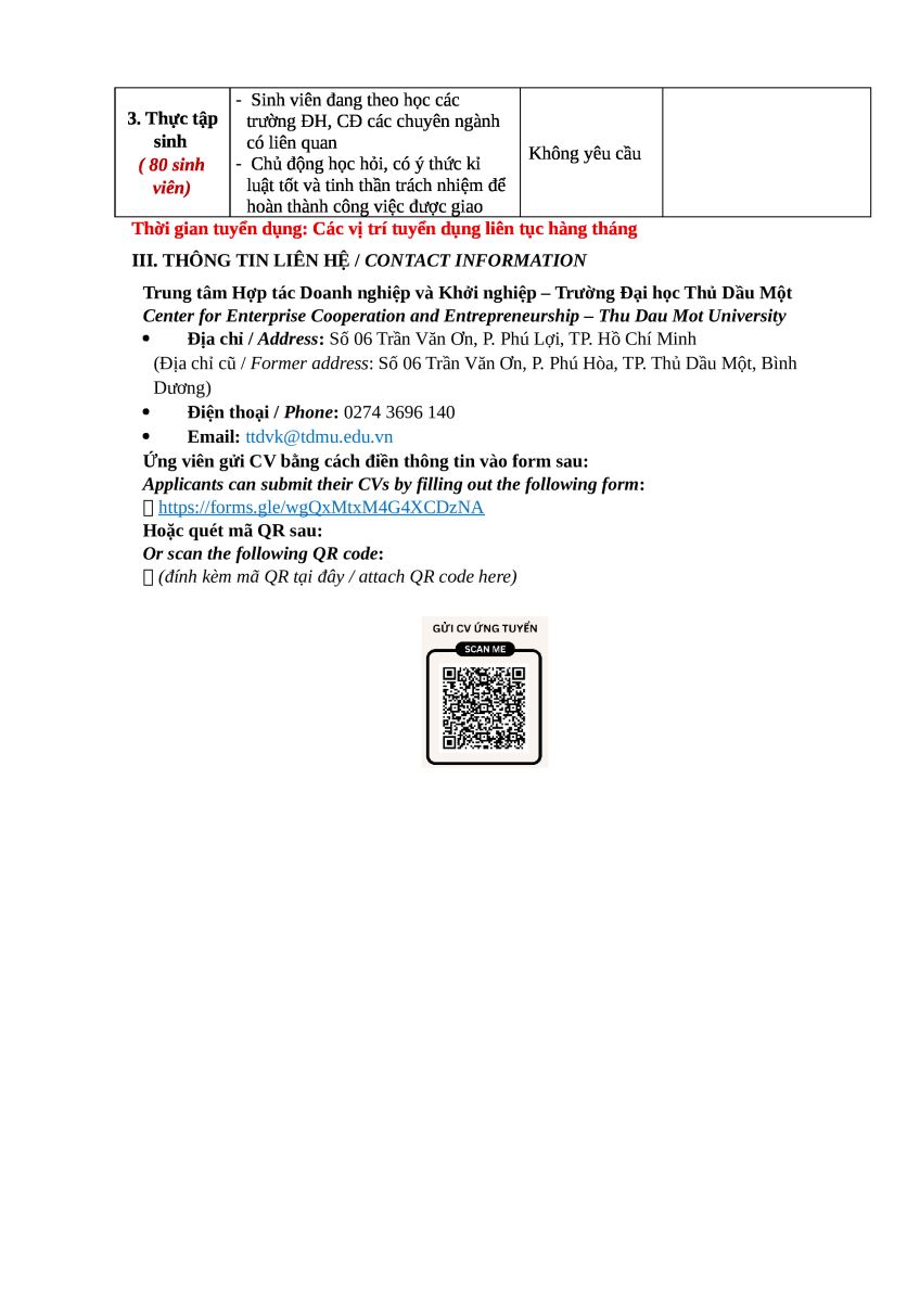 Số lượng tuyển dụng: 380