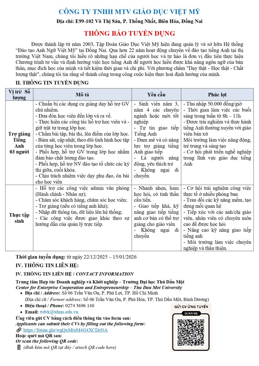Trợ giảng Tiếng Anh- Thực tập sinh